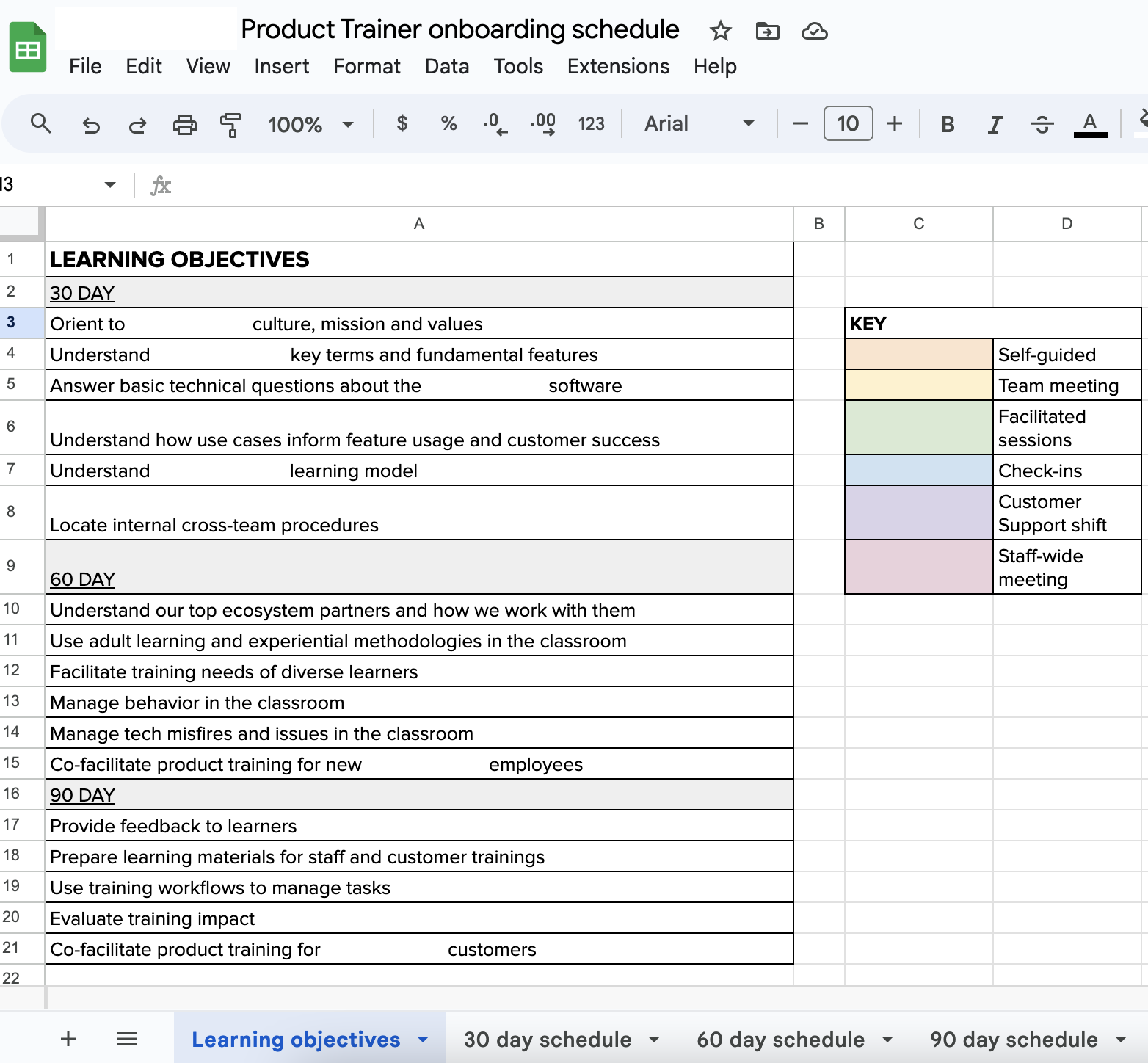 I designed and delivered a 90-day onboarding program for two of my direct reports (Product Trainers), which included learning objectives, schedules, and facilitated training sessions.