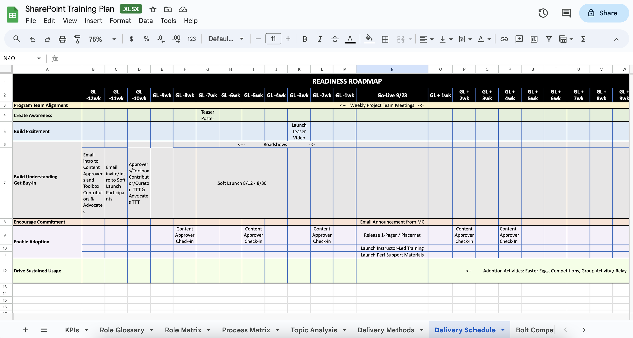 I managed learning and development initiatives for a company-wide intranet rollout. I developed KPIs, a readiness roadmap, and a training plan to help ensure that the new intranet would be successful and integrated into the employee experience.